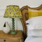 Bright and breezy, this lampshade brings a fresh, uplifting feel to any space. The sunny yellow background sets the stage for delicately scattered floral motifs in cool blue and green tones, creating a perfect balance of warmth and serenity.